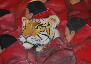Gli animali sono per me il massimo grado di ispirazione. Nel corso degli anni di studio dell’arte, ho conosciuto ed avuto modo di apprezzare le varie loro rappresentazioni, da semplici cani da accompagnamento, alle scene di caccia, all’uso di veri e propri protagonisti della scena; ho amato molto le stampe ed i dipinti di fine ottocento che li ritraevano su figure umanoidi con vesti da sera o in uniforme.